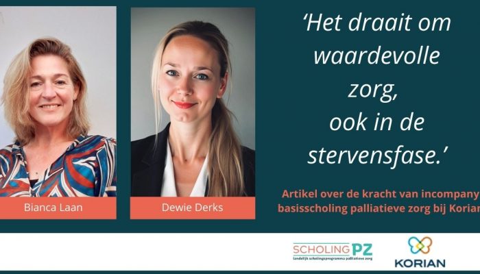 De Basisscholing Palliatieve Zorg bereikt haar laatste fase. De vraag is groter dan ooit en er is nog beperkt plek. Aanmelden kan nog steeds, maar wie mee wil doen moet snel zijn. ‘We zijn op dit moment volop in de running’, zegt Christel. Samen met Judith blikt ze terug op behaalde successen én vooruit naar de toekomst van de scholingen.